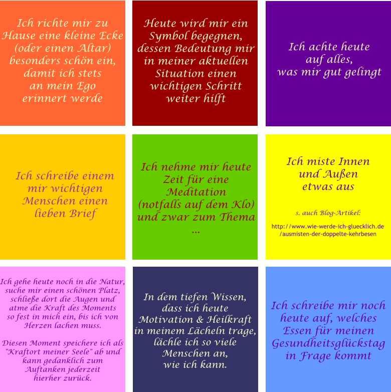Auflösung der 9 Glücksmemokarten mit individuellen Botschaften